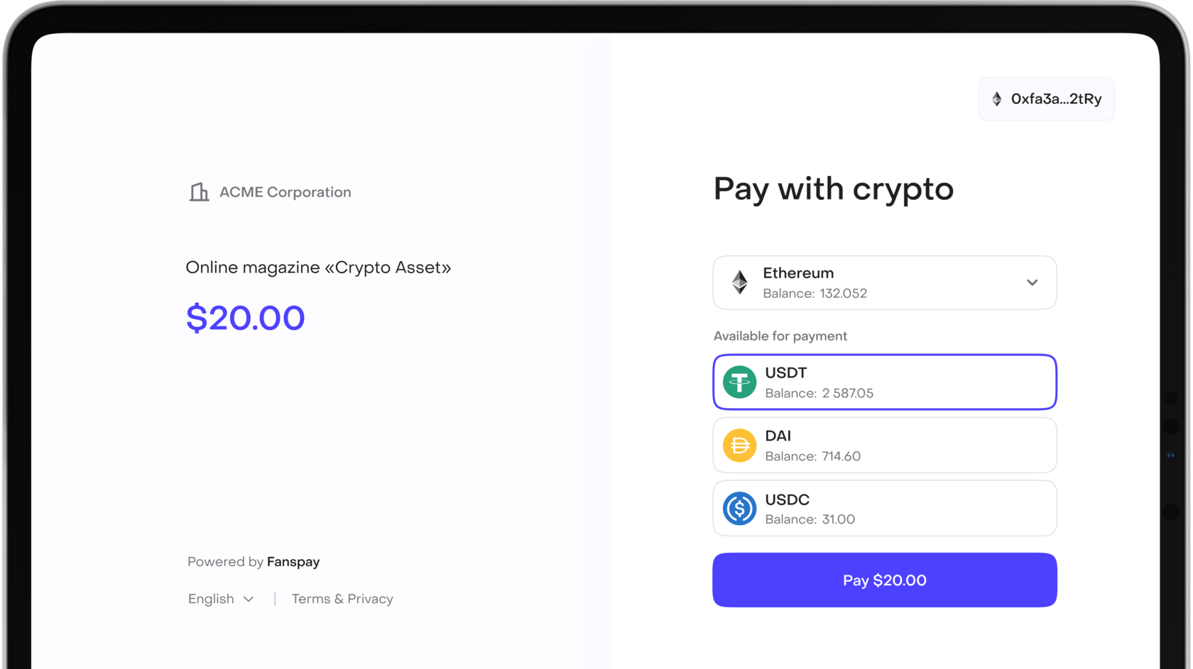 Accept payments in the most popular stable coins USDT, USDC, DAI, BUSD and USDD